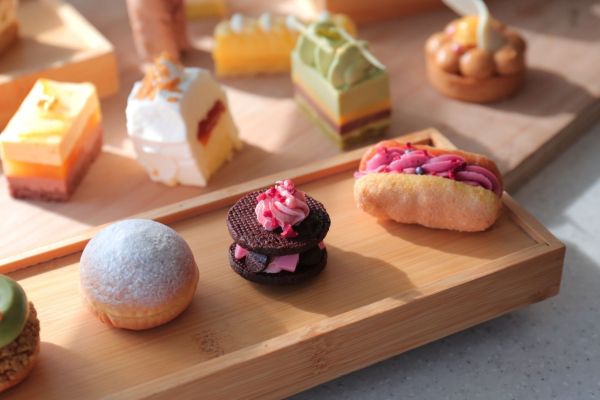 飯店更將甜點企劃從自助餐檯延伸至愜意的午後時光,大廳酒吧同步推出呼應「雪國×南島」主題的三層英式下午茶,每套售價1,180元+10%起,含4款鹹點、4款甜點與2杯飲品,鹹點如「司康」、「培根鹹派」、「菌菇塔」與「鮑魚軟法」,呈現細緻不厚重的鹹香層次;甜點則延續北海道乳源基調,搭配果香元素,推出「紅寶石巧克力夾心」、「焦糖慕斯」、「開心果莓果花圈泡芙」與「哈荔椰」,讓旅人在舒適空間中,細品由雪國乳香鋪陳出的午後風景。