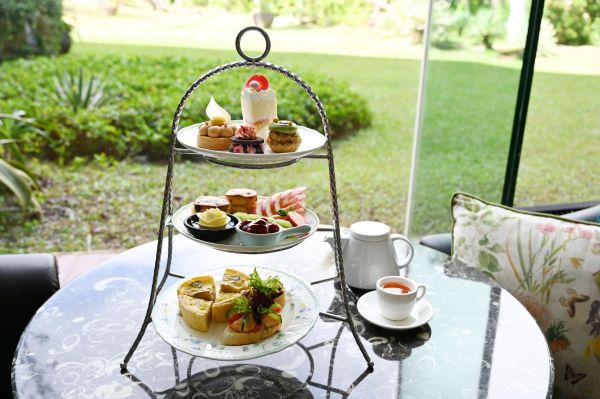 圖4:大廳酒吧三層英式下午茶每套1,180元+10%起,集結4款鹹點與4款甜點,旅人可在挑高明亮的空間中,享受悠閒午後時光。圖/墾丁凱撒提供