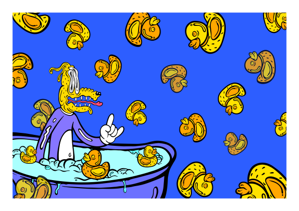 圖說4:《泡澡》是陳京亨以「美式街頭塗鴉」的叛逆精神打造的多福(DOFU)卡通人物系列作品之一(圖片提供──LABIE.io)