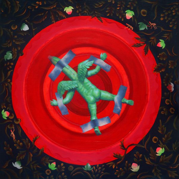 圖說9:「潛龍特展」呈現鴻梅新人獎得主林世雍的複合媒材作品《微處之神-2》(40 × 40 cm,壓克力顏料、色鉛筆、棉紙、畫布)