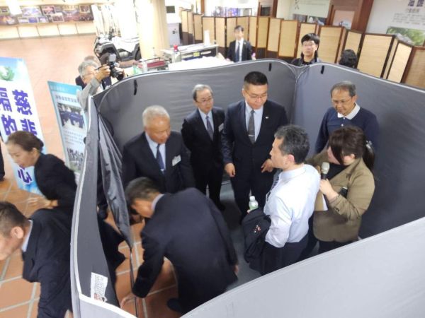 日本三重縣知事(一見勝之 (ICHIMI Katsuyuki),連同NHK隨行記者,共12人,由市府行國處同仁林雨潔陪同, 於下午時分抵達高雄靜思堂,受到慈濟公傳鄭楊慶等志工的歡迎,(一見勝之)知事對「0403花蓮地震慈濟的迅速支援」及「避難所快速設置能力」深感佩服,因此特地前來高雄靜思堂了解,例如救災的組織與運作,公私協力的機制訂定,以及在物資與設施配置上與行政機關的分工,還有避難所環境的快速設立等。