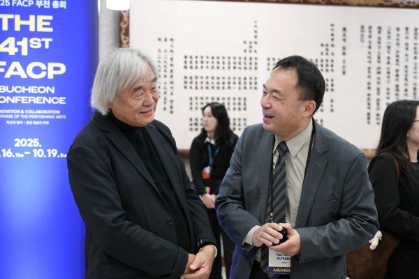 圖2:國臺交團長歐陽慧剛(右1)出席FACP亞洲文化推展聯盟韓國富川年會,與國際知名鋼琴家白建宇(左1)及藝文專業人士交流。