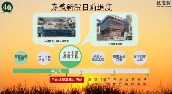 創世嘉義院於民國91年1月31日立案,核准服務22床,長年滿床,受限於空間難以增床,但嘉義有2,388位植物人和重度臥床失智老人,創世現正籌建嘉義新院,以舒緩照護需求,預計服務90床,於115年完成主體結構工程,建院經費目前募集約4成。創世高雄分會周冠華院長表示,創世服務植物人40年,是植物人家庭面對突如其來變故時的依靠,「愛」是支持家屬走下去的力量;「愛劇在一起」公益兒童劇,不只是募集嘉義新院建院經費,更希望透過戲劇,讓孩子從小學會尊重生命、守護生命,種下善的種子。
