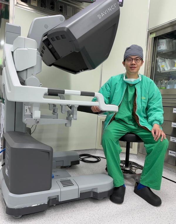圖說2:高醫岡山醫院一般及消化系外科吳柏宣主任操作達文西機器手臂系統,透過達文西機器手臂輔助,能兼顧切除完整性並縮短術後恢復期,是高年長或體能較差患者的福音。