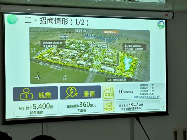 圖說3:南科屏東園區預計可創造5,400個就業機會、360億元年產值。