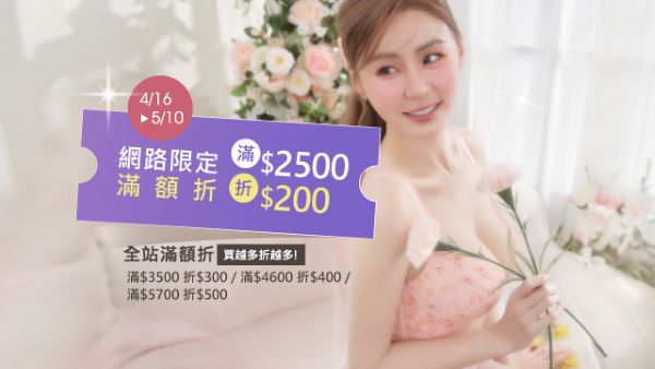 2. 全館滿額折:$2500折$200(網路限定) /$3500折$300 /$4600折$400 /$5700折$500…買越多折越多。