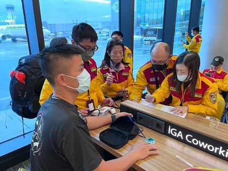 圖說4:高醫附設中和紀念醫院醫護人員在土耳其的任務是照護隨隊夥伴的健康與安全,夥伴出勤前均需測量血壓、體溫、心跳數等,以便後續追蹤。