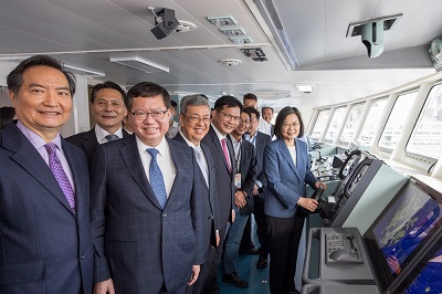 【記者吉雄世/綜合報導】蔡總統、行政院陳建仁院長4月16日在行政院鄭文燦副院長、總統府林佳龍秘書長、行政院羅秉成政務委員兼發言人、交通部王國材部長、連江縣王忠銘縣長、交通部祁文中次長、張永江議長等貴賓陪同下,出席在基隆港西二碼頭舉辦的新臺馬輪首航典禮。立法院陳雪生、許智傑、洪申翰等委員,以及基隆市邱佩琳副市長、航運機關團體及地方民意代表、鄉親約200餘人齊聚一堂共襄盛舉,對新臺馬輪首航表示熱烈的祝賀,為臺馬交通揭開新的里程碑。