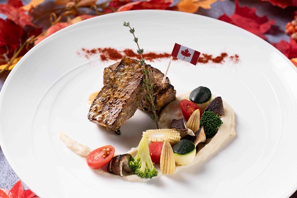 說到牛排,老饕們絕對不能錯過來自「楓葉之國」的加拿大肉品,得天獨厚的北方氣候,有充分的夏季日照和冬季嚴寒氣候,能夠培育出基因最優異的肉牛。加上加拿大境內有充足的放牧草地以及作為飼料的穀物,搭配乾淨的空氣與水與廣闊的空間任牧群倘佯其中。因此牛肉油花均勻、口味豐富軟嫩,並帶有色澤雪白的緊實脂肪。近年來加拿大牛肉已是全球公認的優質食品,更是頂級牛肉的代名詞。本次由加拿大牛肉協會傾力支持的加拿大美食節,主廚特別選用頂級加拿大牛小排和肋眼牛排,於午晚餐時段分別推出,其中晚餐時段主推的「加拿大烤肋眼牛排」,搭配特調醬汁,融合楓糖、芥末、蒜碎、迷迭香與紅酒醋,以慢火燒烤,每2至3分鐘翻面反覆上醬,讓楓糖香層層入味、完美封住肉汁,透過精湛火候掌握,主廚更將肋眼牛排維持在七分熟,使其外酥內嫩、緊實多汁,搭配細緻滑順的手工洋芋泥,勾勒出層次分明的幸福滋味,絕對是本次美食節的焦點。